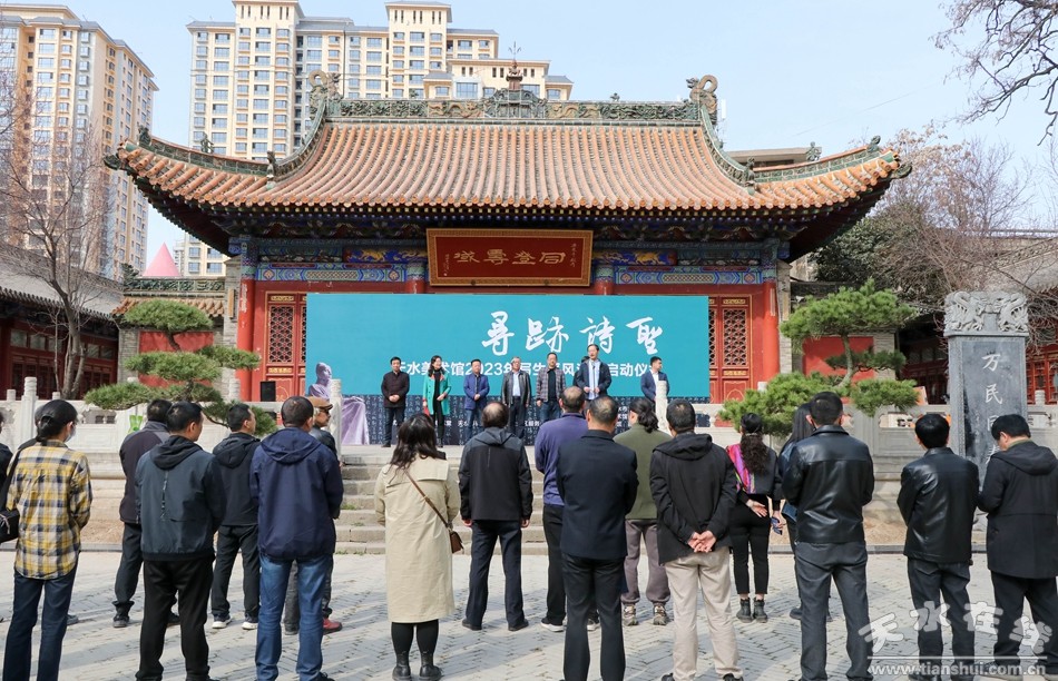 3月10日下午,由天水市文化和旅游局主办,天水美术馆、天水书画院承办的“寻迹诗圣”——天水美术馆2023年写生采风活动启动仪式在天水美术馆举行。市委宣传部副部长王刚出席仪式并为写生团授旗,市文化和旅游局四级调研员、艺术管理科科长陈芳致辞,书画界的专家、教授30余人参加了启动仪式。