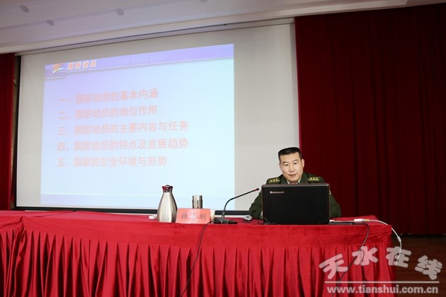 为深入学习贯彻习近平总书记关于国防动员的重要指示批示精神,全面贯彻落实中共甘肃省委 甘肃省人民政府 甘肃省军区《关于加强和改进新时代全民国防教育工作实施意见》(甘发〔2023〕4号)精神和国防动员(人防)宣传教育“进机关”相关要求,进一步增强各级干部的国防观念和国防意识,4月6日下午,天水市邀请甘肃省军区动员局薛志明上校为市委党校春季主体班次一期全体学员进行“国防动员介绍”专题讲座。市委党校副校长许有平主持讲座。