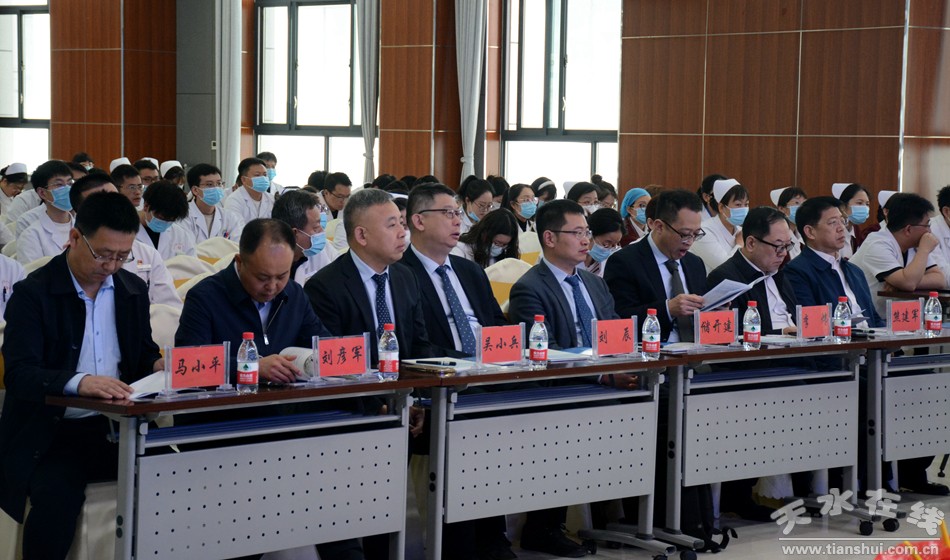 天水市委常委、组织部部长张晓强与海军军医大学第三附属医院胆道恶性肿瘤专病诊治中心主任、主任医师姜小清教授一同为工作站揭牌。市政府党组成员、副市长汪小娟讲话。市卫生健康委党组书记、主任王定新主持揭牌仪式。