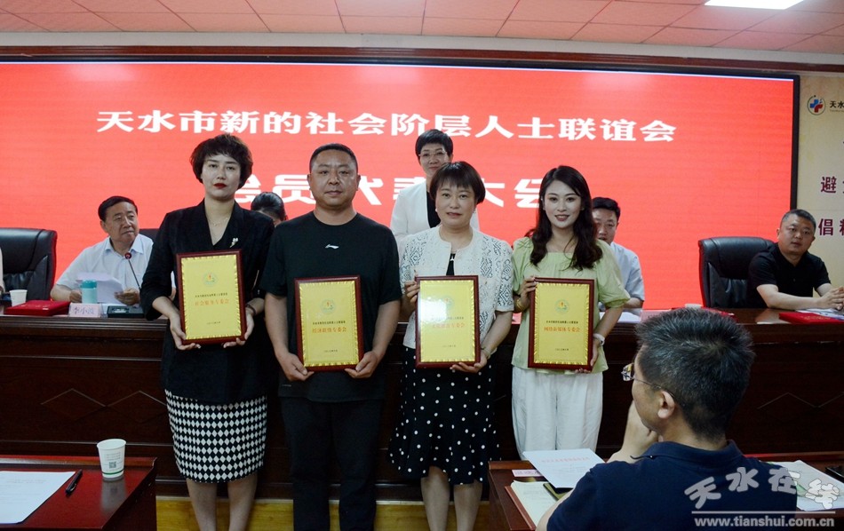 近日,天水市新的社会阶层人士联谊会召开会员代表大会。市委统战部分管负责同志出席会议。会议听取了市新联会工作报告,增补了理事,并向新成立的4个工作专委会授牌。