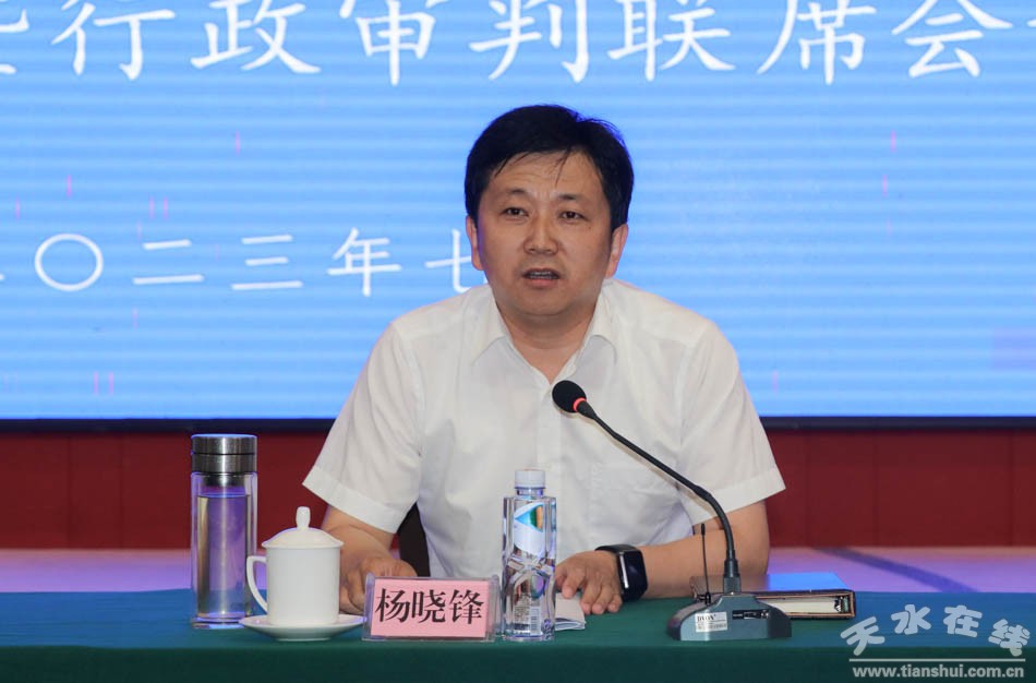 杨晓锋代表市委、市政府向与会代表表示欢迎和感谢。他说,天水将以本次联席会议为契机,做好工作对接,加强统筹协调,加快推进落实,更好释放府院联动机制效能,构建陇南、定西、天水三市实质性解决行政争议协同发展新格局,实现执法与司法的良性互动、优势互补、效能叠加。