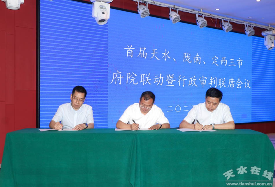 天水、陇南、定西三市中院院长共同签订《行政审判跨区域协作协议》 |