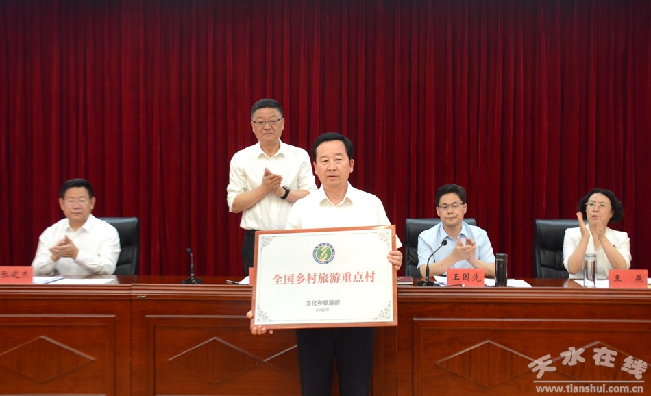 会议为获评全国乡村旅游重点村的秦州区平南镇孙集村和全省旅游休闲街区的天水古城授牌,表彰了全市文化旅游产业发展先进单位和优秀招商引资企业。