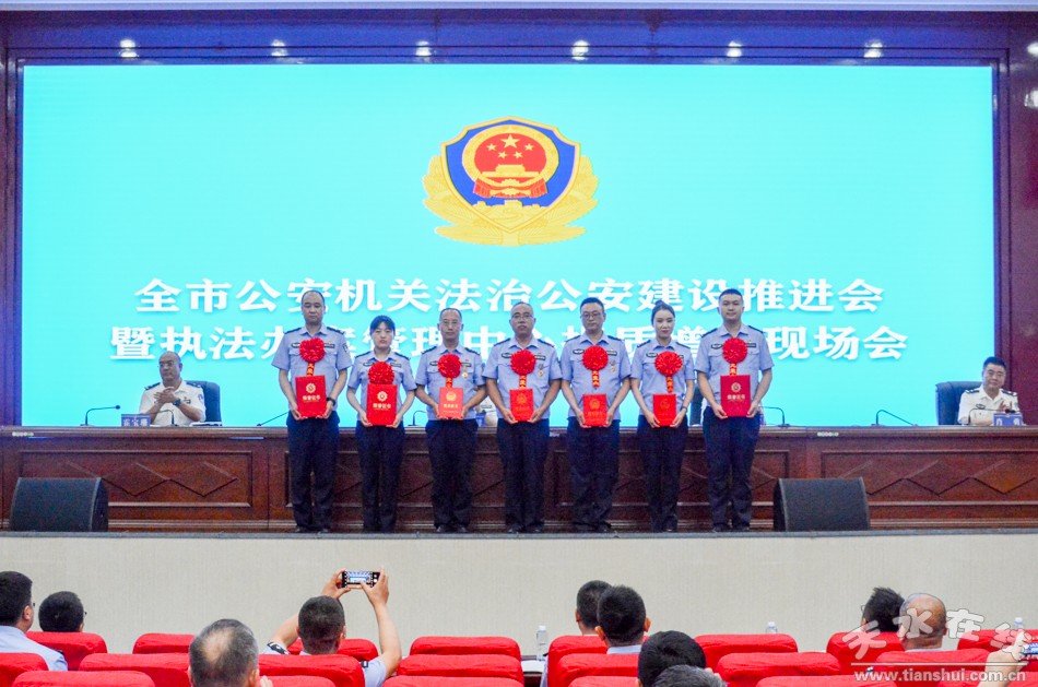会前,与会同志观摩了秦州分局城区交警大队、天水郡派出所执法办案、营造法治化营商环境、矛盾纠纷排查化解等工作及秦州分局执法办案管理中心提质增效工作开展情况。市公安局党委委员、副局长霍宝珊通报了全市公安机关法治公安建设情况;市公安局党委委员、副局长肖勇宣读了《表彰决定》。秦州分局、麦积分局作了交流发言。