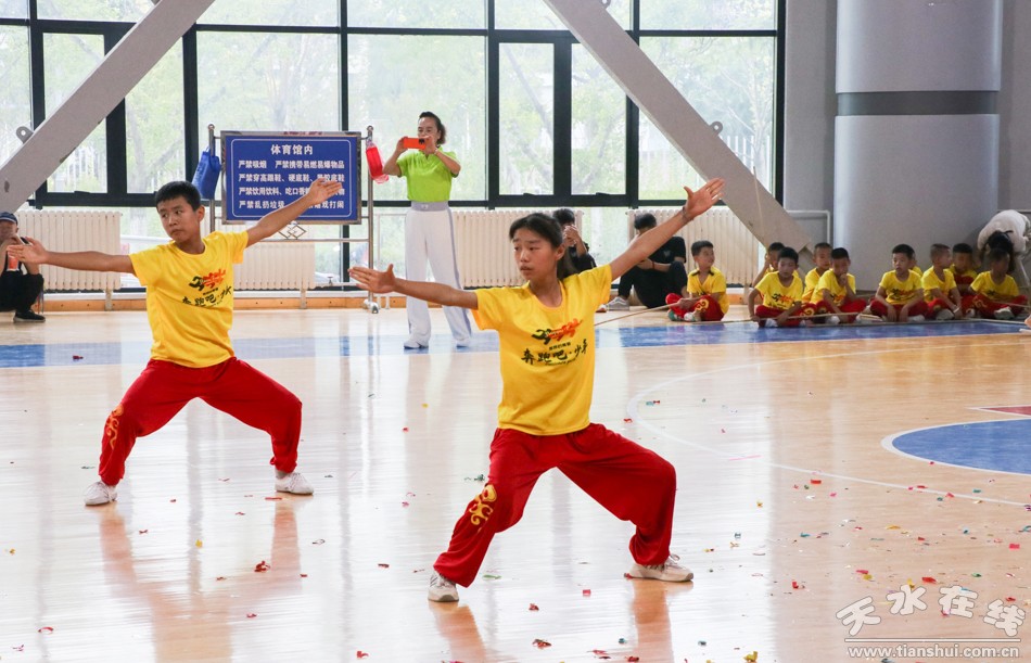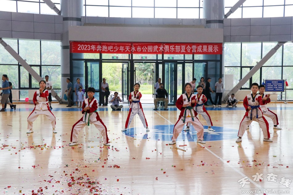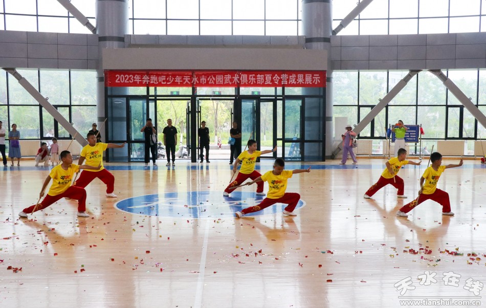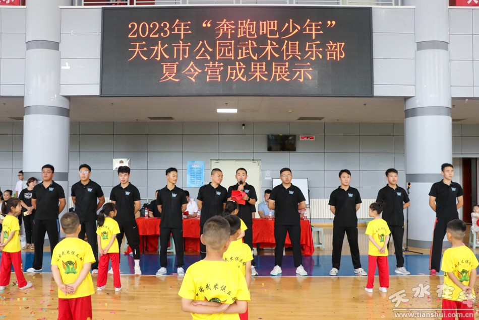 8月9日,2023年“奔跑吧·少年”天水市公园武术俱乐部夏令营成果展示活动在天水市体育中心举行。天水市体育局党组书记李康宁宣布活动开始。