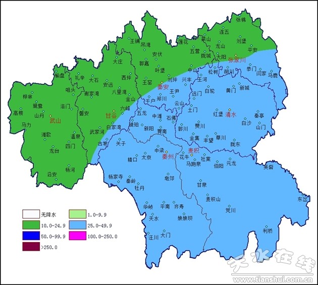 ▲天水市24日20时至26日20时累积降水量预报图(单位:毫米)
