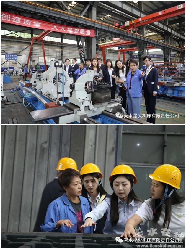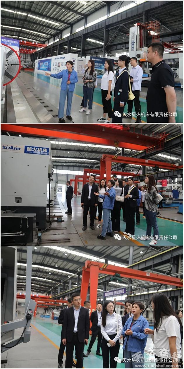 参观过程中,双方互动积极,一边听讲解,一边答疑问。他们了解了星火公司是1967年由沈阳第一机床厂搬迁到天水的三线企业,也是目前天水地区老厂房利用率最高的三线企业。星火发展五十余年来,星火机床打造了中国驰名的“SPARK”品牌,形成了以五轴联动机床、精密轧辊磨床、专用车床等18大类300多个品种的产品群,其中,我们自主研发的五轴联动车铣复合加工中心和多轴缠绕机床等设备打破国外技术封锁,真正实现了破卡替代之后,赞叹不已。