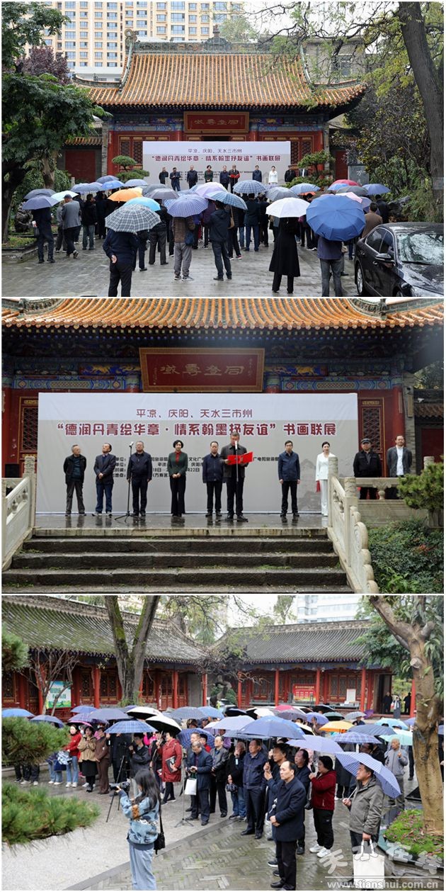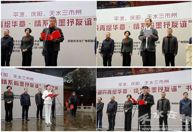 天水市文化和旅游局副局长李星杰、平凉市美术馆馆长郭显凤、庆阳市美术馆副馆长贺也频分别致辞,天水书画院院长、天水美术馆馆长李靖主持仪式。