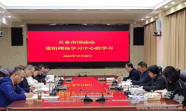 10月20日,天水市国动办党组理论学习中心组召开集体学习会议,办党组书记主持会议,办党组成员和调研员参加学习,全体党员干部职工列席会议。