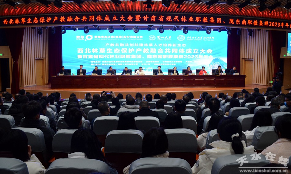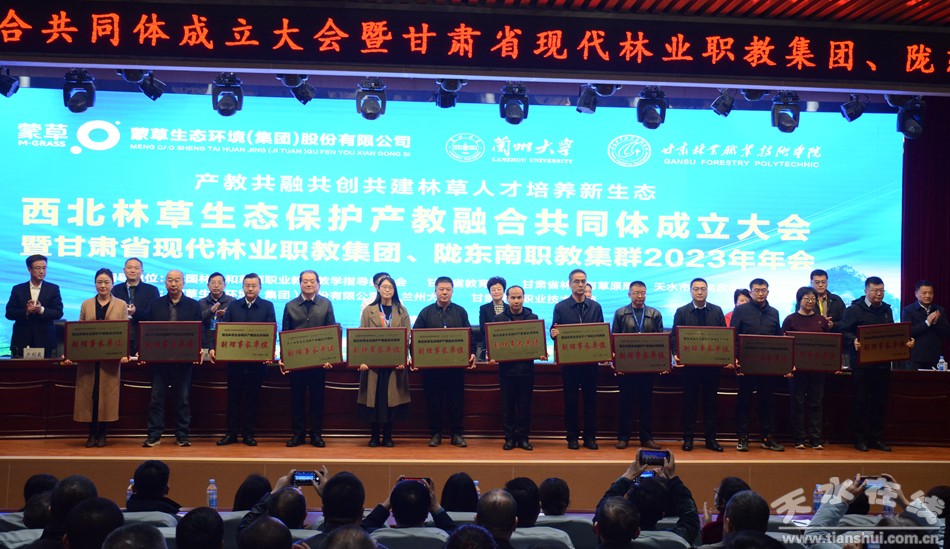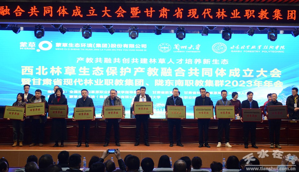 11月16日,西北林草生态保护产教融合共同体成立大会暨启动仪式在甘肃林业职业技术学院隆重举行。本次活动是在全国林业和草原职业教育教学指导委员会、甘肃省教育厅、甘肃省林业与草原局、天水市人民政府的指导下,由蒙草生态环境(集团)股份有限公司、兰州大学、甘肃林业职业技术学院牵头,联合全国10个省市的5家科研机构、14所高等院校、5所中职、3家行业内带事业单位共同发起,旨在充分发挥职业教育资源集聚优势,广泛汇聚林草行业产教资源,致力于构建产教供需对接机制,探索跨区域产教融合新途径,促进人才培养供给侧和产业需求侧结构要素全方位融合,更好地服务林草生态保护产业高质量发展。