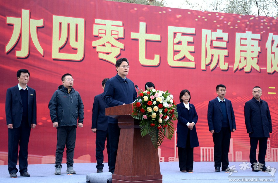 新天水讯【记者马放】11月20日上午,天水四零七医院康健康复·养老项目开工仪式举行。市委书记冯文戈宣布项目开工,市委副书记、市长王国先致辞。