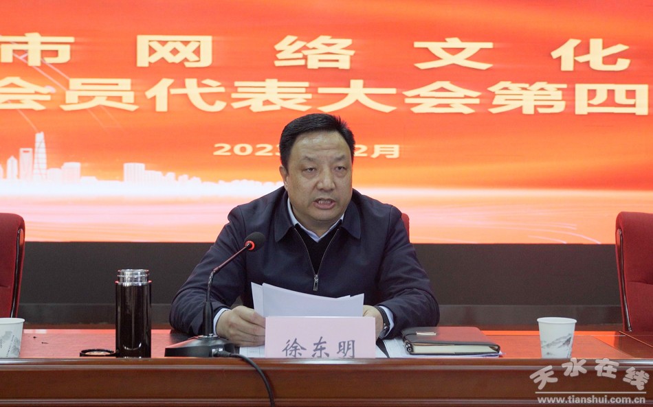 12月8日,天水市网络文化协会召开第一届第四次会员大会。会上听取了协会工作报告,审议通过了协会章程、会费收缴及管理办法修订草案,选举产生了新一任理事会。市委宣传部副部长、网信办主任徐东明出席会议并讲话。