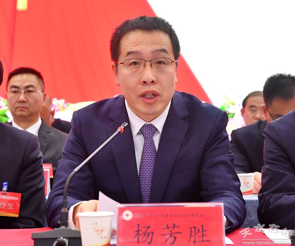 杨芳胜代表省红十字会向大会召开表示祝贺,希望天水市红十字系统深入学习贯彻党的二十大精神和习近平总书记关于红十字事业发展的重要论述,着眼群众所急、党政所需、红会所能,整合推进“三救三献”核心业务,在参与防灾减灾、应急救援、乡村振兴、健康甘肃行动、主动创安主动创稳中精准发力,持续用力,不断推动全市红十字事业再上新台阶。