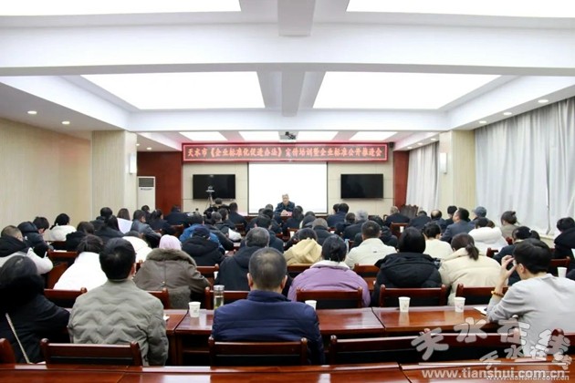 为进一步激发企业标准化创新活力,引领企业标准化水平提升,12月27日,天水市市场监管局召开《企业标准化促进办法》宣传培训暨企业标准公开工作推进会。局党组成员王俊峰出席会议并讲话,对企业靠实主体责任、强化标准实施及做好自我声明公开等工作提出具体要求。各县区市场监管局分管领导、业务股室负责人及企业代表共60余人参加会议。