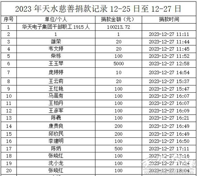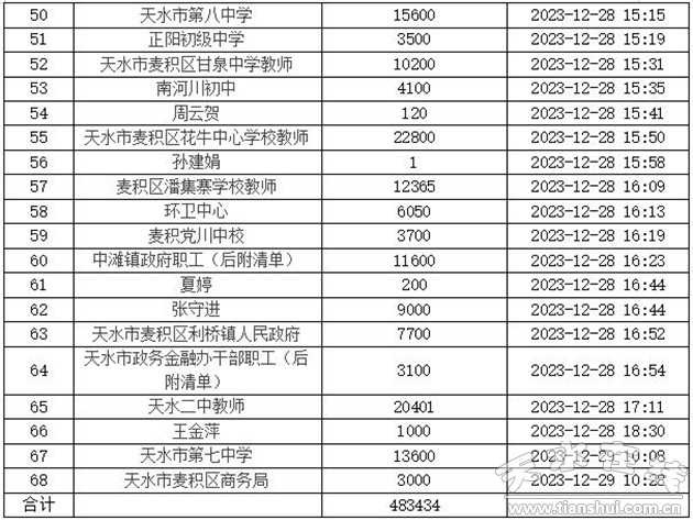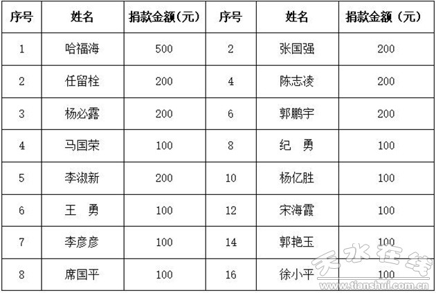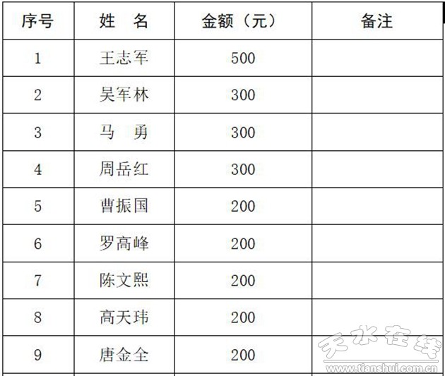 3.天水市政府金融办捐款花名册: