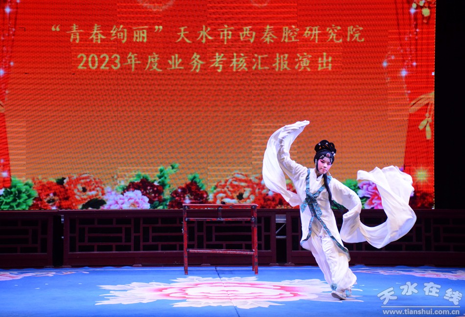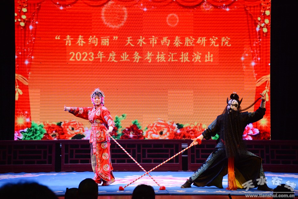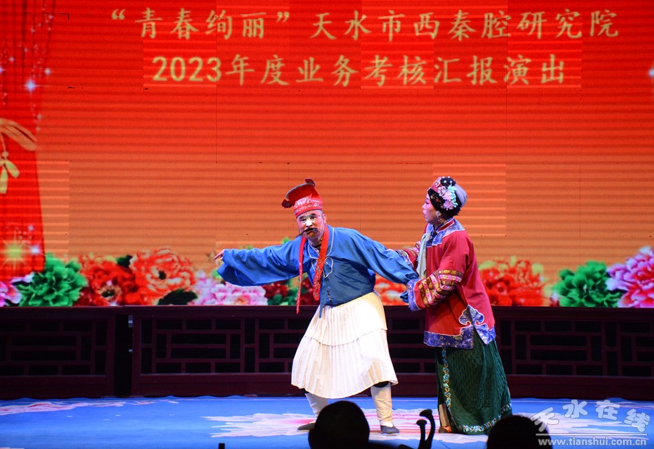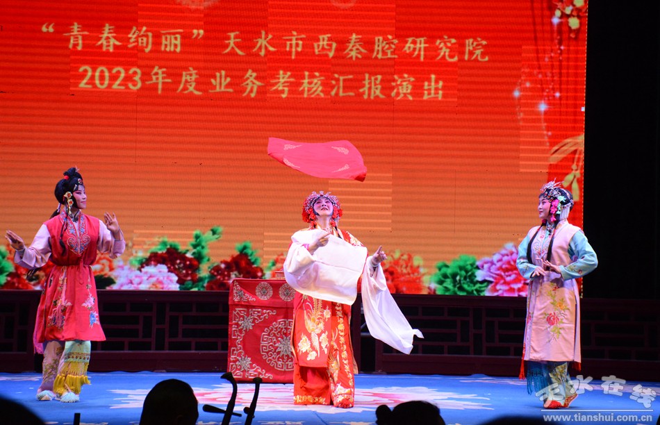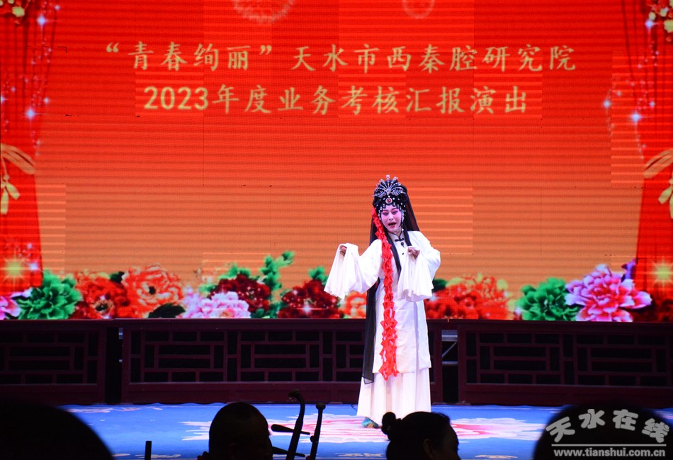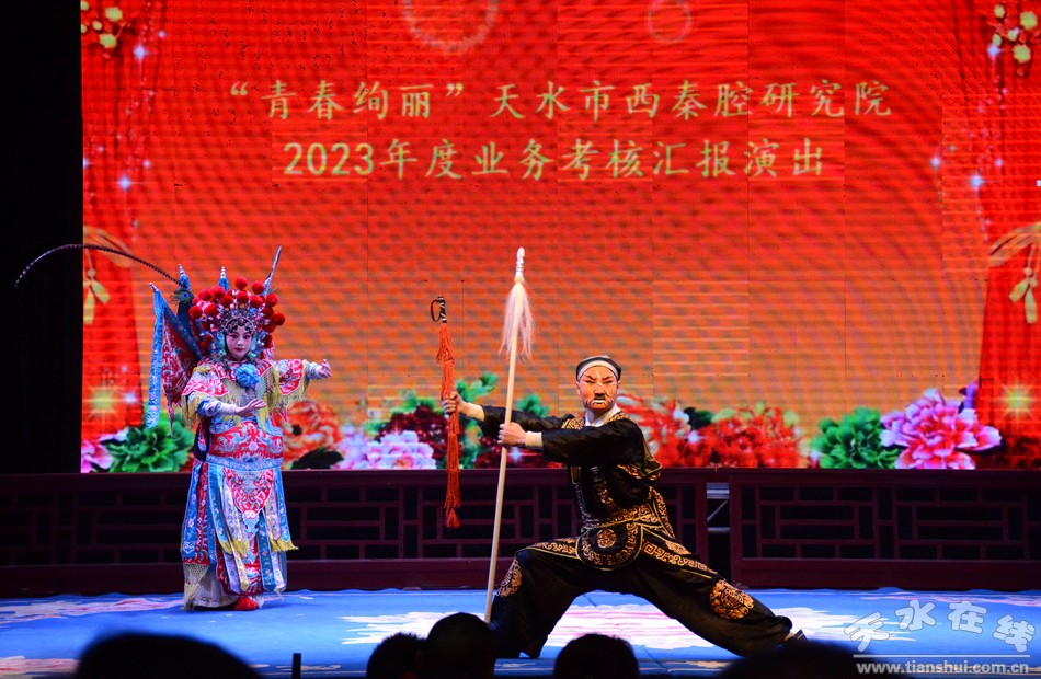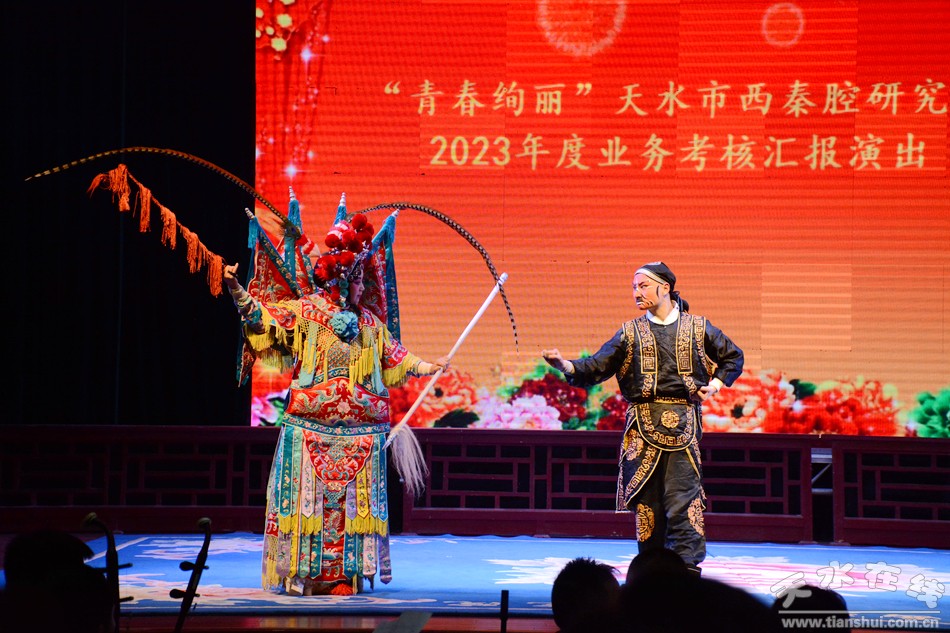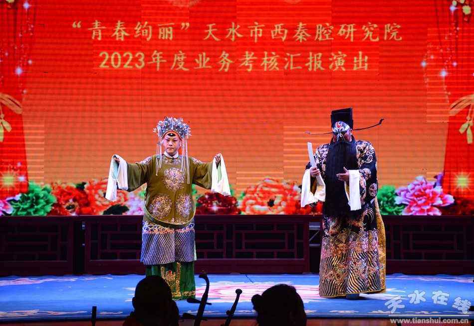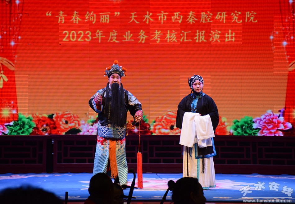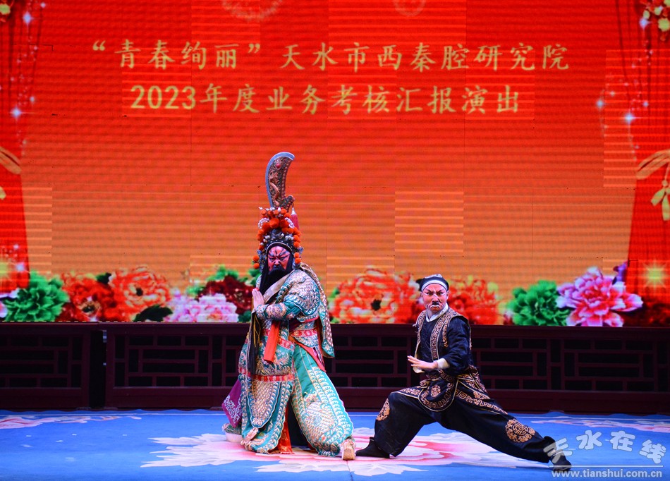 为深入贯彻落实党的二十大精神和全国宣传思想文化工作会议精神,着力培育和践行社会主义核心价值观,赓续中华文脉、推动中华优秀传统文化创造性转化创新性发展,按照市文化和旅游局安排部署,“青春绚丽”天水市西秦腔研究院2023年业务考核折子戏汇报演出1月12日下午在天水市光明剧院进行。