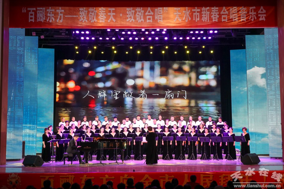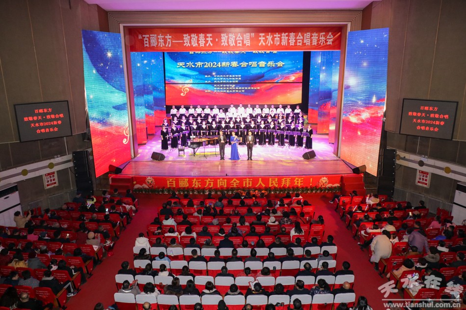 1月30日晚,由中共天水市委宣传部、天水市文化和旅游局主办,天水市职工合唱团、天水市合唱协会、甘肃省第五建设集团有限责任公司共同承办的“百郦东方——致敬春天 致敬合唱”天水市2024年新春合唱音乐会在秦州大剧院举行。市委常委、宣传部部长王文东,市人大常委会副主任沈建玲,副市长董小平,市政协副主席罗增芳现场聆听了音乐会。