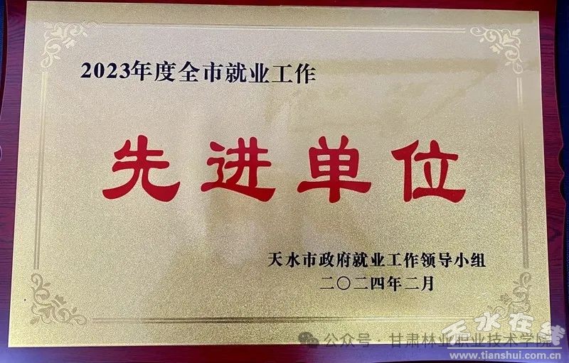 2月26日,天水市政府就业工作领导小组印发《关于2023年度全市就业工作先进县区先进单位先进企业的通报》,我院荣获2023年度天水市就业工作先进单位称号。