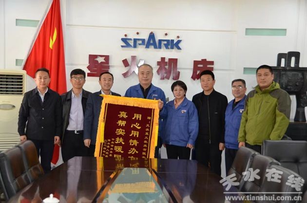侯宗辉一行向星火机床公司赠送了“用心用情办实事,真帮实扶暖民心”的锦旗,表达对星火机床公司的感谢。
