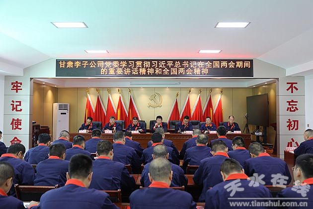 3月21日,甘肃省天水李子金矿有限公司党委召开专题会议,深入学习贯彻习近平总书记在全国两会期间的重要讲话精神和全国两会精神,传达学习习近平总书记近期重要讲话重要指示和中央重要会议精神,以及卢进董事长在《人民政协报》发表的署名文章。公司党委书记董事长冯波主持会议并讲话。公司领导、助理及以上管理人员参会。