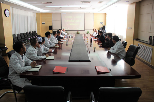 4月12日,兰州市第一人民医院党委书记杨晋梅一行4人来我院开展对口帮扶交流指导。市四院党委书记陈江鱼、院长陈祥珍等在院领导班子成员及相关科室主任参加座谈会。