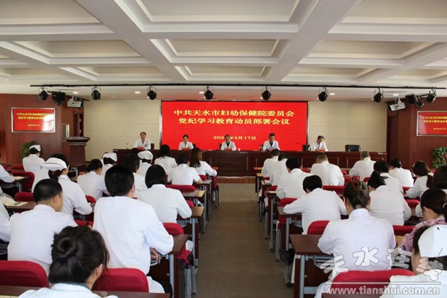 会议传达学习了习近平总书记关于开展党纪学习教育的重要讲话和重要指示精神;传达学习了中央、省委、市委党的建设工作领导小组会议精神,宣读了《天水市妇幼保健院开展党纪学习教育工作方案》,安排部署全院党纪学习教育工作。