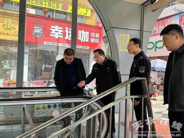 督查组先后深入中国铁路兰州局集团有限公司天水车站、天水市商业大厦、甘谷新城南路地下商场供电公司家属院等人员聚集场所,重点检查了扶梯、自动人行道梯级或踏板是否存在脱落风险,梯级或踏板下陷开关和缺失监测装置等安全保护装置是否有效,电梯使用单位安全管理责任是否落实,电梯维保单位和检验检测机构是否严格按照安全技术规范要求开展维护保养和检验检测等情况。同时,督促各县区市场监管局、经开区分局要持续开展电梯安全隐患排查和自查自纠,发现存在安全隐患的,按要求督促整改并采取相关措施保证电梯安全运行。