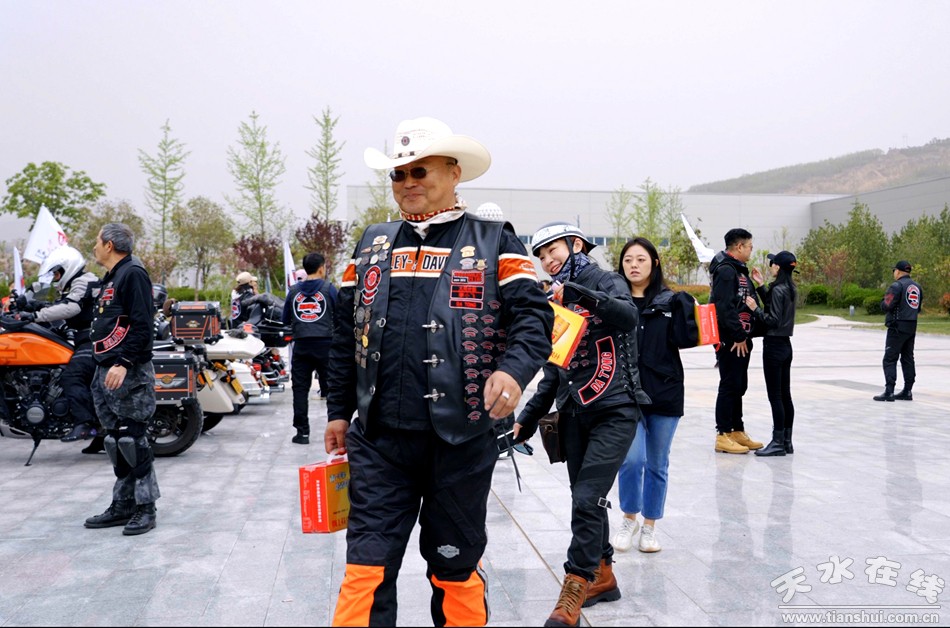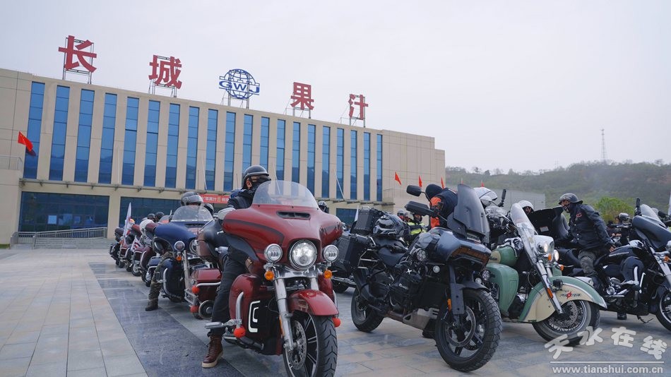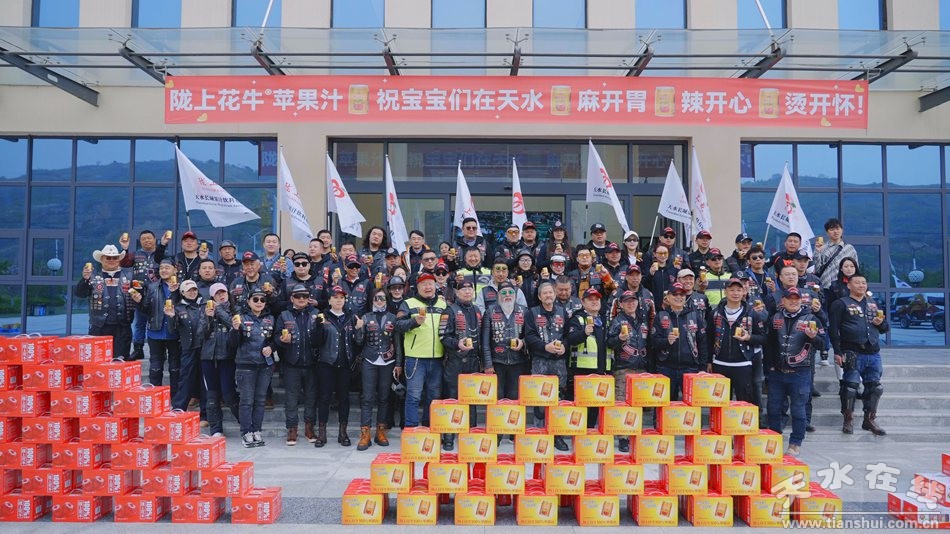 4月20日上午,位于天水市麦积区东柯河畔的天水长城果汁集团股份有限公司院内,音乐激昂,人声鼎沸,一片欢声笑语。来自中国万里骑士俱乐部北京分会的80名机车骑士来这里打卡,齐声点赞天水麻辣烫、陇上花牛苹果汁。