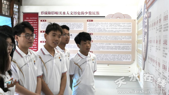 在天水市民族团结记忆馆,同学们参观了中华民族交往交流交融、民族团结进步创建、天水本土文化展示、中华文化体验四个分馆,详细了解了天水各族人民共同团结奋斗、共同繁荣发展的历史进程和五十六个民族基本情况。