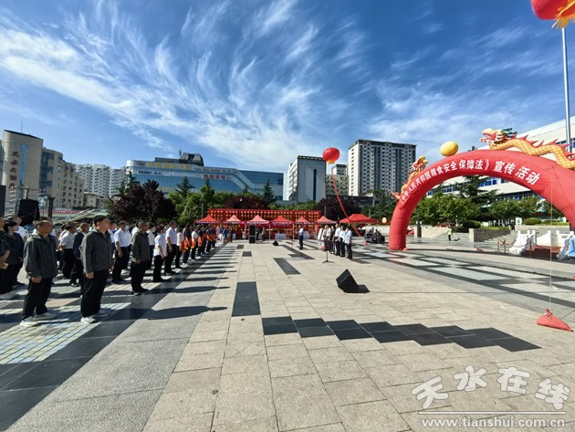 为大力宣传普及和贯彻实施《中华人民共和国粮食安全保障法》,营造爱粮节粮、尊法守法的良好社会氛围,6月11日,天水市粮食和物资储备系统在市龙城广场举行了《粮食安全保障法》大型宣传活动。天水市粮食和物资储备局、秦州区粮食和物资储备局、天水市第一粮库有限公司、天水市军粮供应有限公司、天水元亨商贸有限公司、甘肃福粮嘉农业有限公司等单位的干部职工300余人参加了宣传活动。
