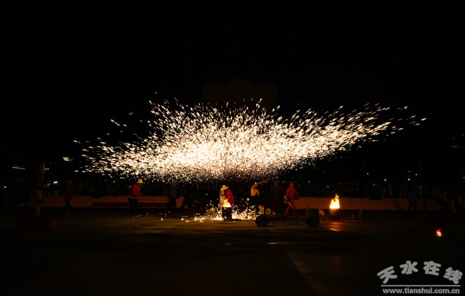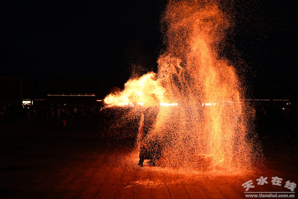 6月21日22日晚8:30,由天水在线主办、天水裴龙打铁花艺术团表演的2024(甲辰)年公祭伏羲大典配套活动之打铁花在天水伏羲广场震撼上演。《天水欢迎你》词曲唱作人镐天应邀演唱了《天水欢迎你》歌曲,为打铁花活动助阵。