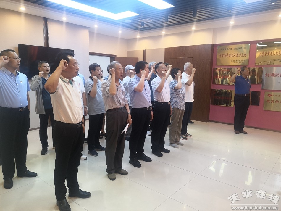 老同志们先后参观了张家川县沈遐熙革命纪念馆、马家塬车舆博物馆和清水县抗日救亡运动纪念馆,重温入党誓词,感悟红色历史,追忆英雄事迹,近距离感受革命先烈执着的理想信念和忠贞不渝的为民情怀。随后召开党纪学习教育专题学习会,集中学习了《习近平关于全面加强党的纪律建设论述摘编》,安排部署了下半年党支部重点工作,全体党员现场交纳了党费。