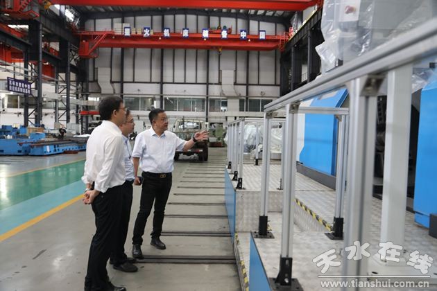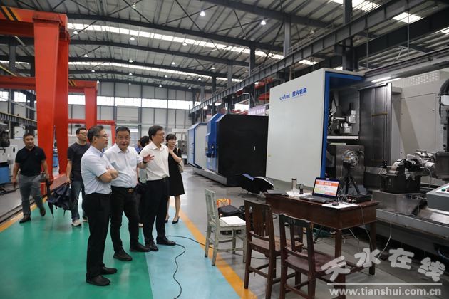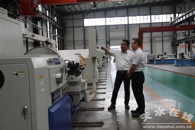 在工业园生产现场,蒋保权向姜鑫一行介绍了企业的历史沿革,并就企业发展现状、技术储备、人才培养等相关问题以及企业精细加工、产品国产化率等进行了交流。蒋保权结合现场的各类机床产品及加工设备,详细介绍了企业技术研发、市场拓展、科技成果转化、产业链延伸等情况。
