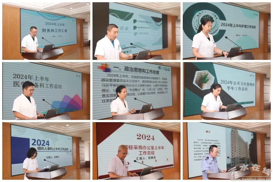随后,医院领导班子成员依次上台,分别就各自分管工作上台总结,并对下半年重点工作进行了安排部署。