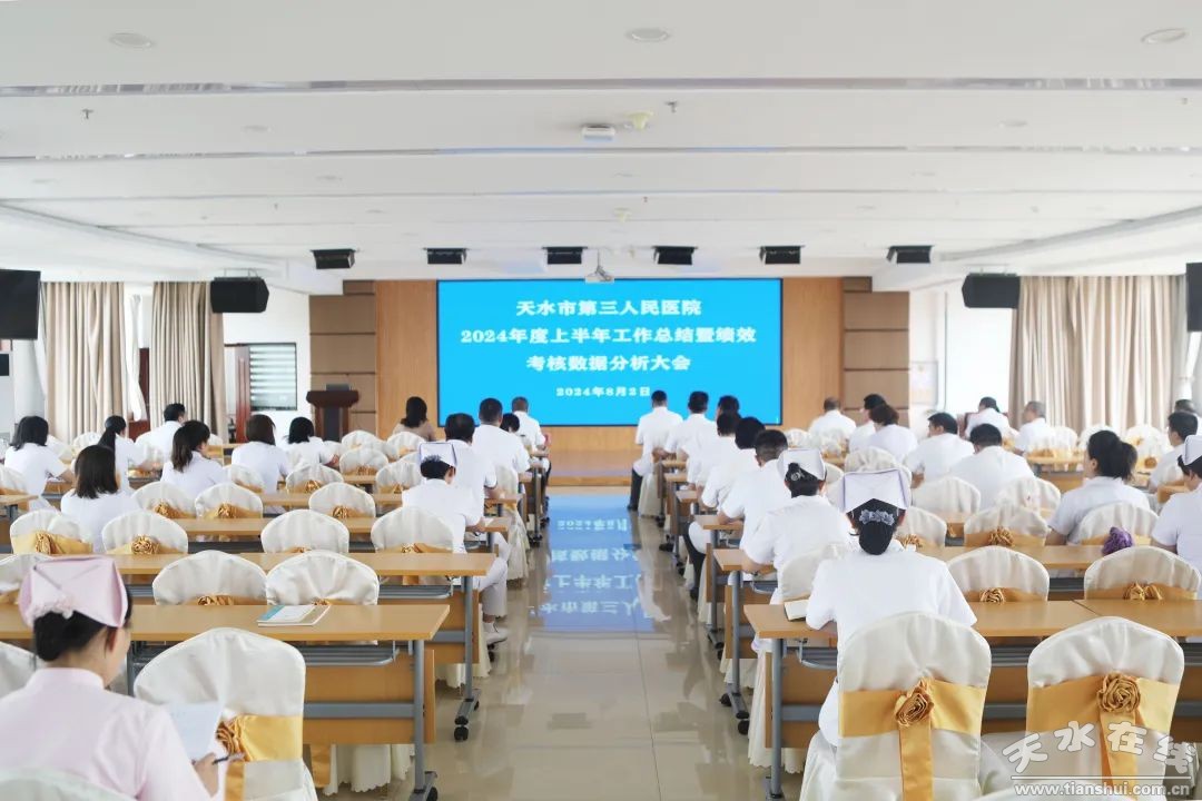 8月2日下午,天水市第三人民医院召开2024年上半年工作总结暨绩效考核分析会议。会议以全面贯彻落实党的二十届三中全会精神为指引,传达贯彻市委、市政府近期会议精神和主管部门工作要求,总结医院2024年上半年工作及运营管理情况,查找存在的问题差距,研究部署下半年重点工作。医院在家领导班子及全体中层干部参加会议,会议由院党委副书记、院长李刚主持。