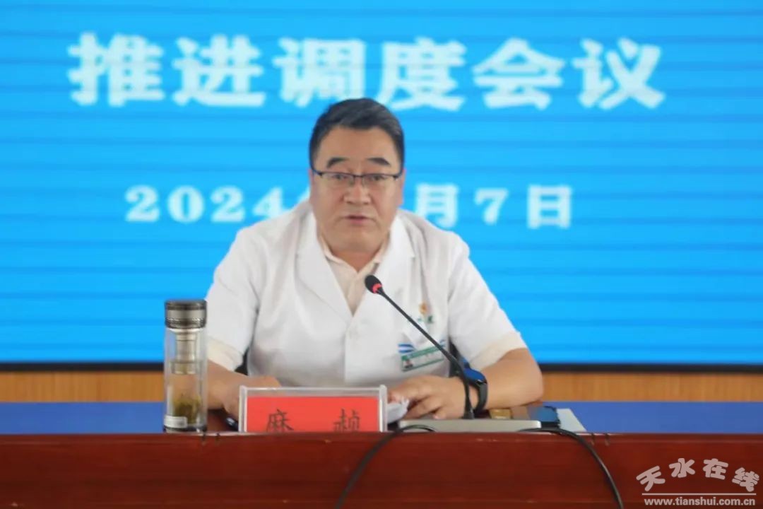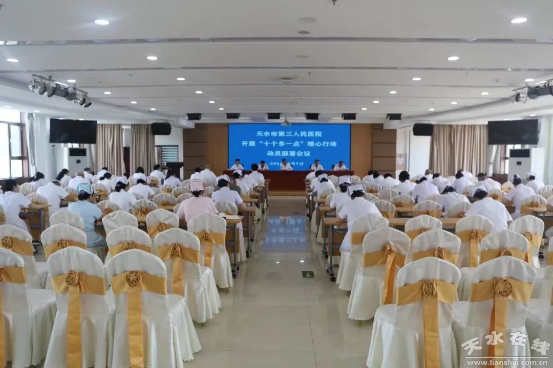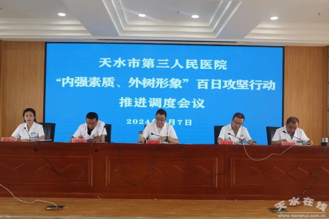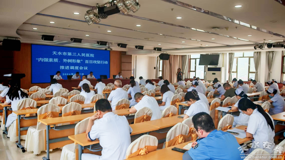 为贯彻落实省、市卫健委相关文件和会议精神,促进和谐医患关系,为广大群众提供更为优质、高效、便捷的医疗服务,让暖心、贴心的医疗服务落到实处,不断增强人民群众的就医获得感,稳步提升患者就医的满意度。2024年8月7日天水市第三人民医院召开开展“十个多一点”暖心行动动员部署及“内强素质、外树形象”百日攻坚行动推进调度会议,对我院两项行动的开展进行全面安排部署。医院全体党政班子、中层干部、全体干部职工共200余人参加会议,会议由院党委副书记、院长李刚主持。
