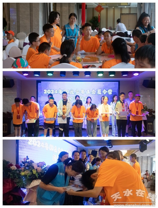 课程结束后16:30分在大酒店宴会厅进行了活动总结及2024阳光少年夏令营天水之行的结营仪式,省工会及各市州工会的领导对本次研学活动给予了高度评价,肯定了活动的组织与实施,更对青少年们的成长与进步表示了由衷的欣慰。同时,基地还通过问卷调查的形式,广泛收集了参与者的意见与建议,为未来活动的持续优化提供了宝贵参考。值得一提的是,此次夏令营还吸引了新进公司大学生的积极参与,他们作为领队的助教,不仅展现了青春的风采与活力,更在研学过程中贡献了自己的力量。他们的加入,不仅为研学团队注入了新鲜血液,也为青少年们树立了积极向上的榜样。