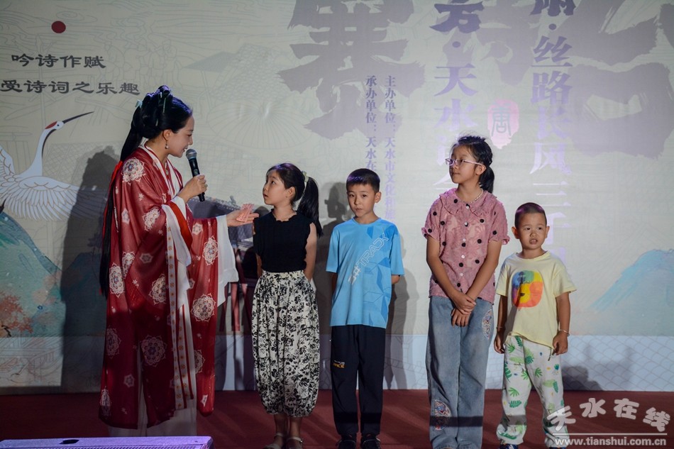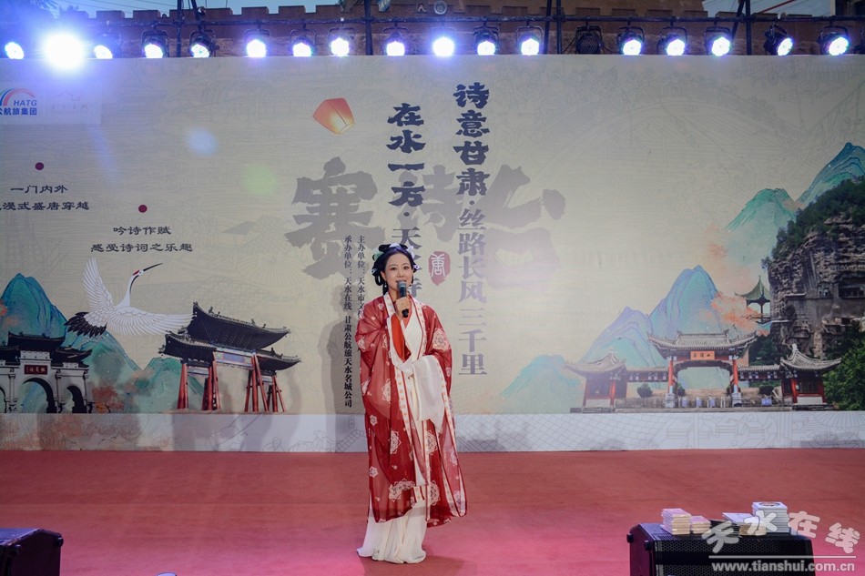 8月14日晚,“诗意甘肃·丝路长风三千里”在水一方·天水诗会赛诗台第七场活动在天水古城风云广场举行。本次赛诗台活动由天水市文化和旅游局主办,天水在线、甘肃公航旅天水名城公司共同承办。目的是传承和弘扬中华优秀传统文化,让广大市民和游客朋友们在寓教于乐中了解中华文化的博大精深和独特魅力,增强文化自信。“诗意甘肃•丝路长风三千里”在水一方•天水诗会正式活动将于9月7日在我市隆重举行,作为诗会的预热活动,赛诗台活动也将进一步扩大诗会活动的影响力,营造我市浓厚的诗会文化氛围。