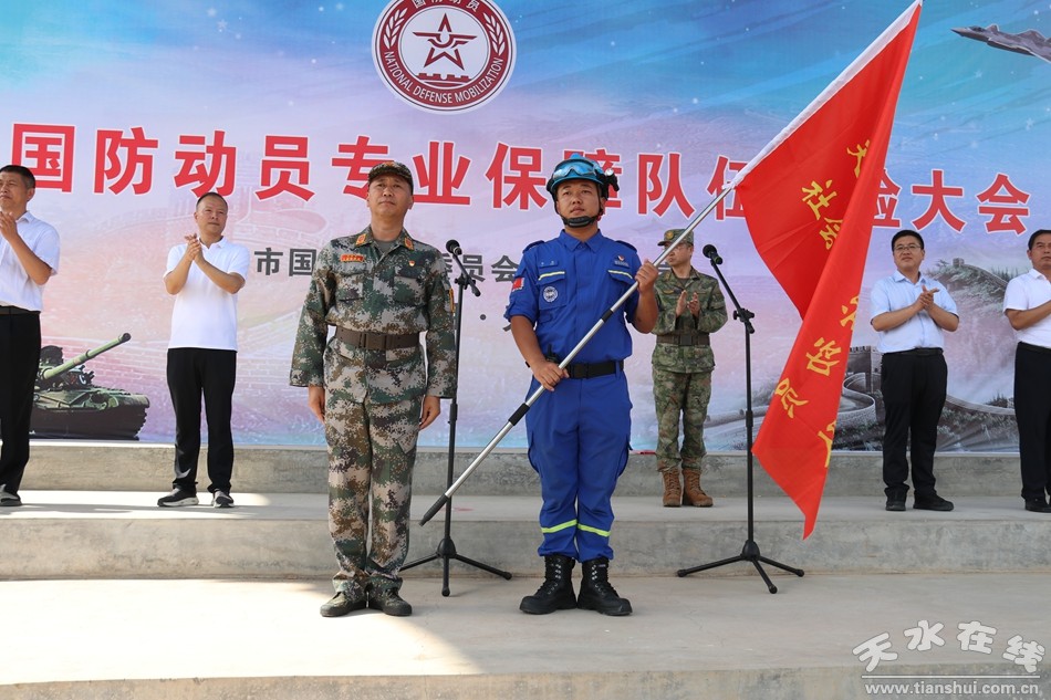 市国动办、天水军分区动员处、市发改委、市工信局、市交通局、市卫健委、市生态环境局、市市场监管局等主管部门分管领导和23家市属专业队组建单位分管领导全程观摩,市国动委联合办副主任、市国动办主要领导为各专业队授旗并讲话。