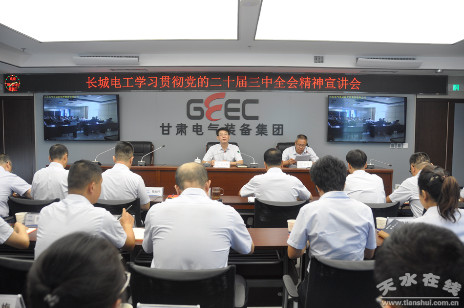 为深入学习贯彻党的二十届三中全会精神,牢牢把握全会精神的核心要义、丰富内涵和实践要求,以改革创新精神推动公司高质量发展,8月21日,甘肃电气集团党委书记、董事长刘万祥到长城电工开展学习贯彻党的二十届三中全会精神宣讲。刘万祥围绕深刻认识党的二十届三中全会的重大意义、深入学习领会习近平总书记在党的二十届三中全会上的重要讲话精神、全面准确理解《决定》提出的进一步全面深化改革重大举措等方面对全会精神进行了系统阐释和深入解读,对抓好全会精神贯彻落实提出要求。