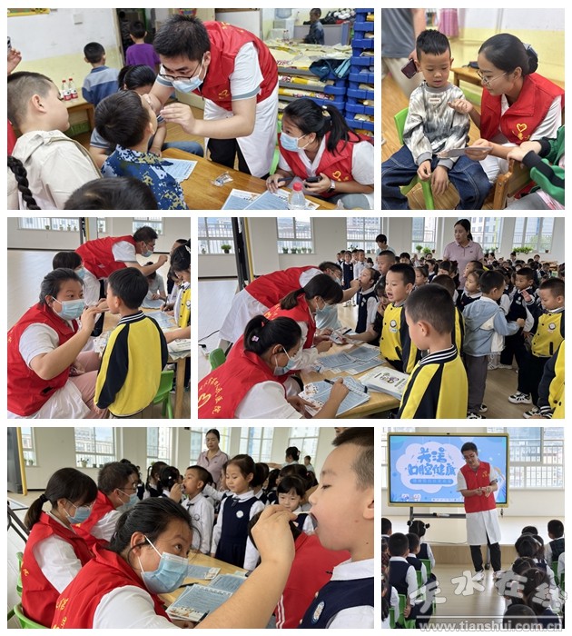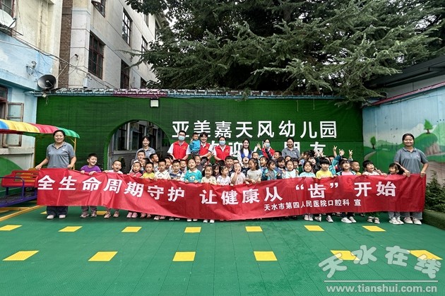 为提升儿童口腔健康知识水平,帮助儿童养成良好的口腔卫生习惯,9月12日、14日,天水市四院口腔科医护人员先后走进亚美嘉天风幼儿园、道北幼儿园,为孩子们带来了一堂别开生面的口腔健康教育示范课,通过猜谜游戏、实验互动、短片播放及知识竞赛等形式,向孩子们介绍了口腔健康知识,寓教于乐,加强了孩子们对爱牙知识点的理解,充分调动了孩子们参与互动的积极性。课后还为200余名儿童进行了口腔健康检查,并将口腔体检报告及时反馈给教师和家长。