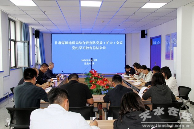 9月13日,甘肃煤田地质局综合普查队召开党委(扩大)会议暨党纪学习教育总结会议,传达学习习近平总书记对党纪学习教育作出的重要指示精神、中央党的建设工作领导小组会议精神及省委党纪学习教育总结会议精神,全面总结普查队党纪学习教育工作,部署推进全队党纪学习教育工作常态化长效化。普查队班子成员、党支部书记、科级干部、在职党员参加会议。