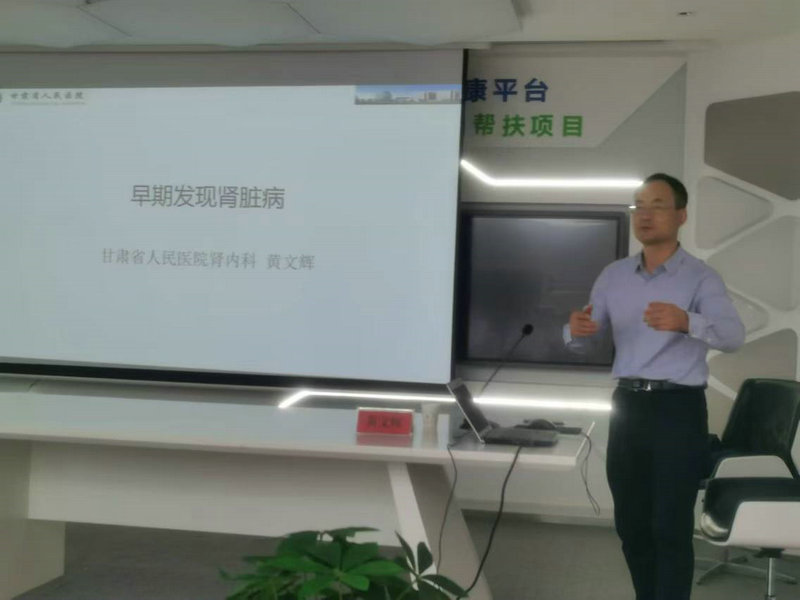 黄文辉教授与姚雄兵副院长代表双方医院签署了《甘肃省人民医院协作医院协议书》,共同为天水市二院颁授“甘肃省人民医院肾内科医联体”牌匾。签约授牌仪式结束后,黄文辉以《早期发现肾脏病》为题作了精彩的专题讲座。专家团队一同参观且指导了市二院血液净化中心业务工作,同时对血液净化技术给予肯定。