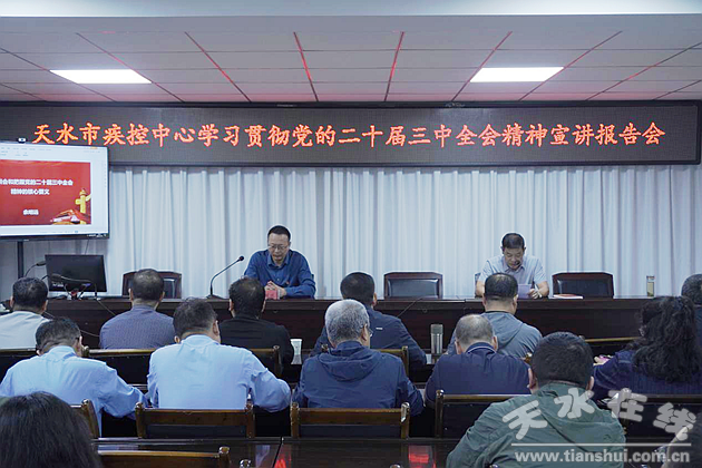 为深入学习宣传贯彻党的二十届三中全会精神,激励党员干部准确把握全会精神实质和丰富内涵,推动全会精神入脑入心、见行见效。9月13日,市疾控中心召开学习贯彻党的二十届三中全会精神宣讲会,邀请天水师范学院马克思主义学院教授、硕士研究生导师、副院长,中共天水市委讲师团成员余明远作宣讲报告,报告会由市疾控中心党委书记、主任曹惠灵主持,中心领导班子成员、各科室职工代表共计80余人参加。