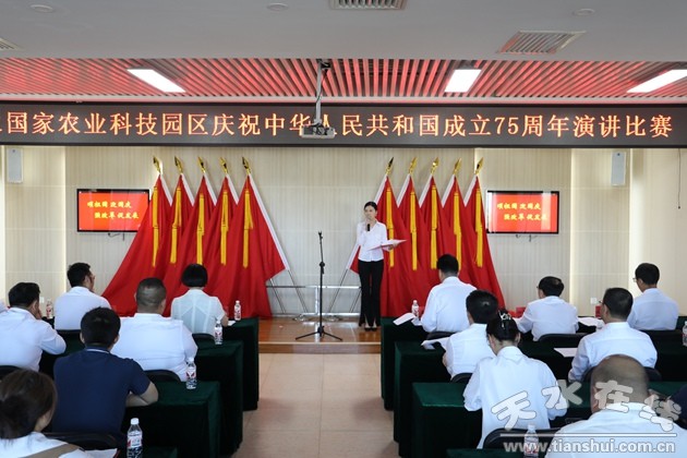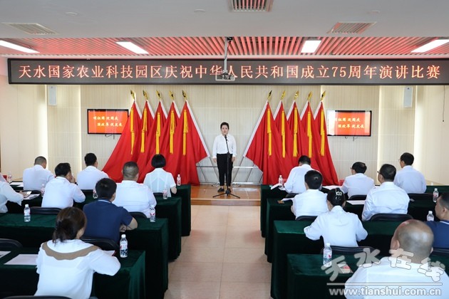 为庆祝中华人民共和国成立75周年,大力弘扬爱国主义精神,增强干部职工凝聚力和向心力。9月25日,天水国家农业科技园区举办了以“颂祖国 迎国庆 强改革 促发展”为主题的演讲比赛活动。此次活动共有20名选手参赛,园区管委会全体党员干部职工及各驻园企业代表共计50余人参加活动,活动邀请市直机关工委督导监察科科长赵海伟现场指导。