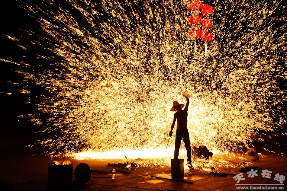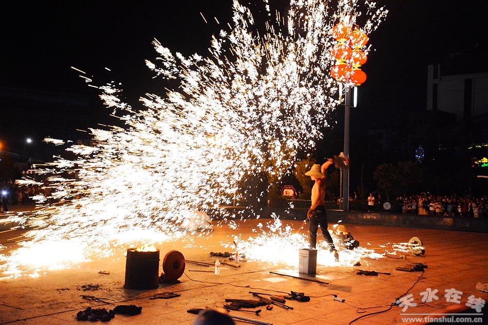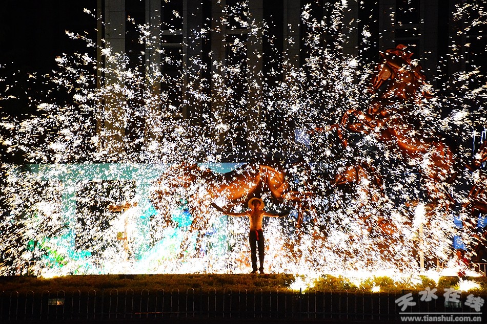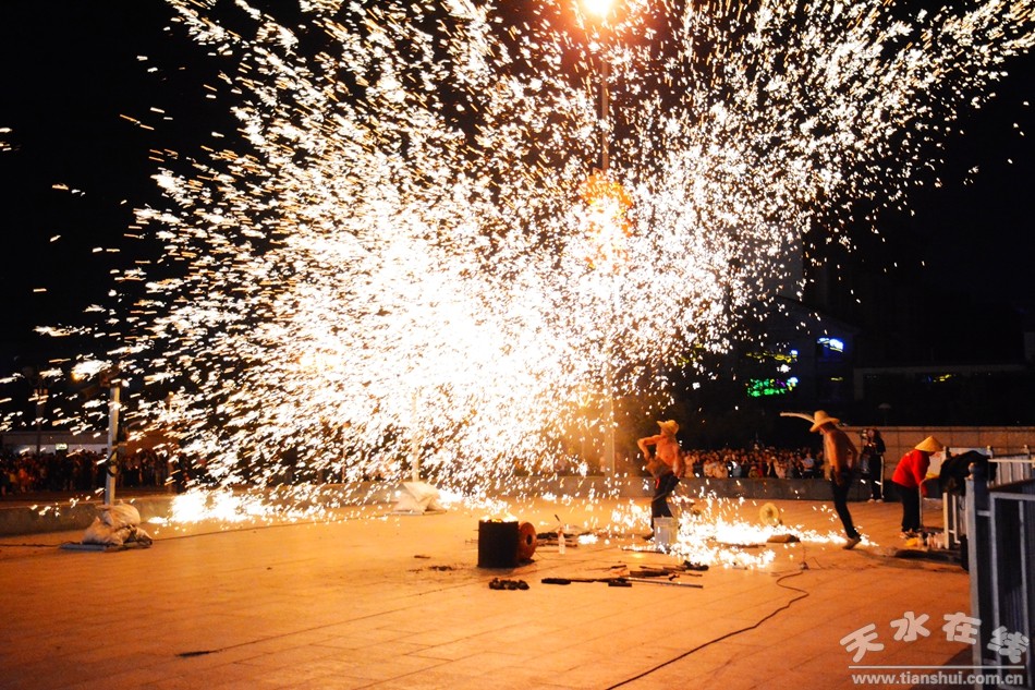 ■ 这是麦积区“庆中秋·打铁花”火壶表演