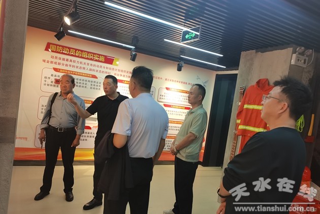 在西湖嘴人防工程宣教体验基地,一行人详细参观了展厅设置、板面图文、电子设备以及多媒体等,并进行现场体验。通过视觉、听觉和亲身体验的方式,直观地感受到了国家和天水市人防工程的发展历程和建设成果,进一步增强了参观者居安思危的忧患意识。期间,还与天水市国动办相关人员进行交流。
