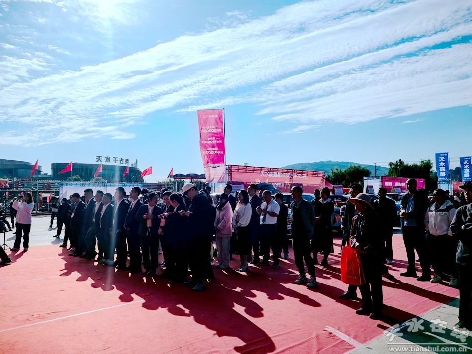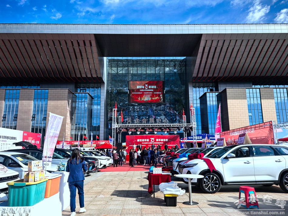 10月1日上午9时,天水市商贸基础设施建设经营有限公司董事长兼总经理张伟宣布:天水会展中心庆国庆促消费系列活动正式启动。本次活动包括中外商品展、车展和动漫展。甘肃天合实业(集团)有限公司董事长李忠、兰州金骆驼文化传播有限公司总经理甘治国、兰州爱漫文化传媒有限公司西北区域代理负责人费腾参加启动仪式。
