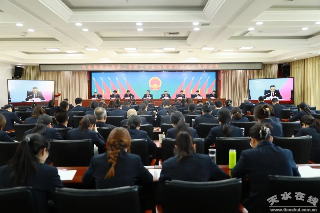 10月10日,天水市人民检察院召开2024年前三季度工作总结暨第四季度工作推进会,通报前三季度全市检察机关业务数据和案件质量情况,并对第四季度工作任务进行安排部署。市检察院党组书记、检察长杨耀明出席会议并讲话,会议由市检察院党组副书记、常务副检察长杜彦群主持。