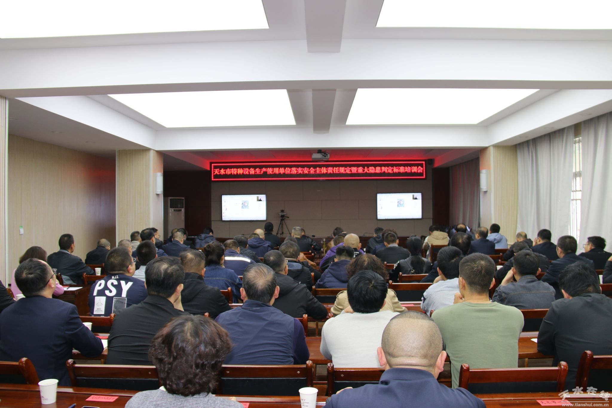 培训以视频会议形式组织,在市局二楼视频会议室设主会场,市局一楼会议室和各县(区)市场监管局设分会场,市、县(区)市场监管局特种设备安全监察人员,乡镇(街道)市场监管所负责人,全市燃气充装单位、电梯维保单位、锅炉使用单位、大型游乐设施运营使用单位、重点场所电梯使用单位法定代表人和安全总监(安全员),部分起重机械、场(厂)内专用机动车辆使用单位法定代表人和安全总监(安全员),共计800余人参加培训会。
